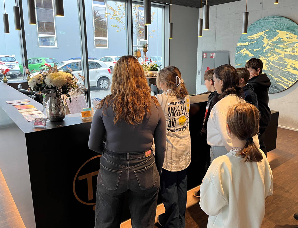 Gleich nach dem leckeren Zmittag im Restaurant fairpflegig galt es, Teig auszuwallen, Formen auszustechen und Quitten- oder Himbeer-Konfi aufzupinseln – fertig waren die Spitzbuben zum Nachhausenehmen. Im Hausdienst erfuhren alle, wie man bei TRANSfair heizt, putzt, kühlt oder repariert️. Die jungen Gäste kontrollierten Radiatoren und durften eine Saugscheuermaschine testfahren. Ein Quiz rundete den Tag ab, den die TRANSfair-Lernende Lena vorbereitet hatte.
